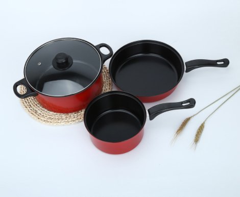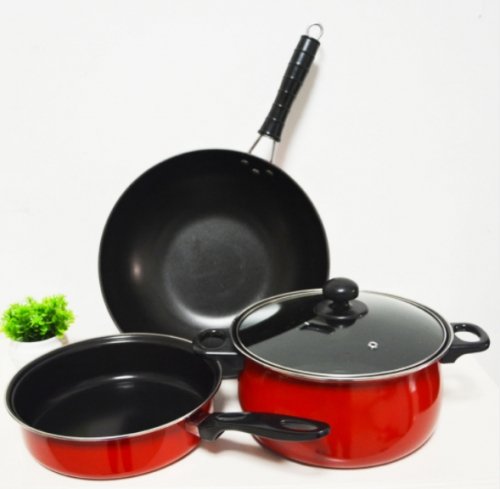 2018 New 4pcs colorful nonstick iron cookware set with bakelite handle