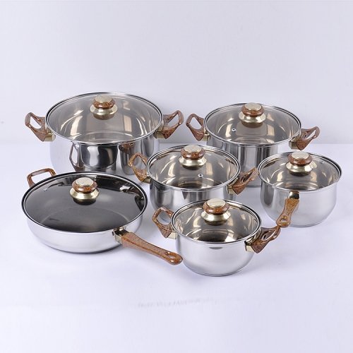 2018 New arrival 12 pcs stainless steel cookware set/glass lid