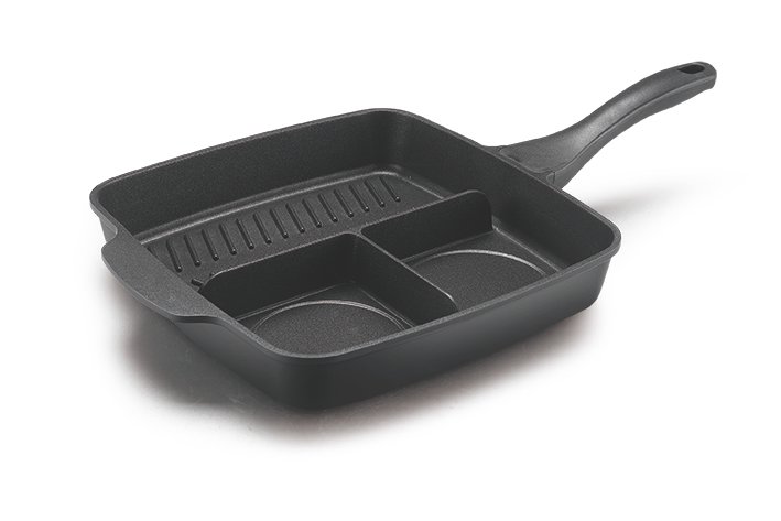 2018 hot seller three sections in 1 cook grill pan/die-cast aluminum/bakelite handle for breakfast