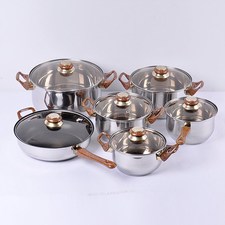 2018 New arrival 12 pcs stainless steel cookware set/glass lid