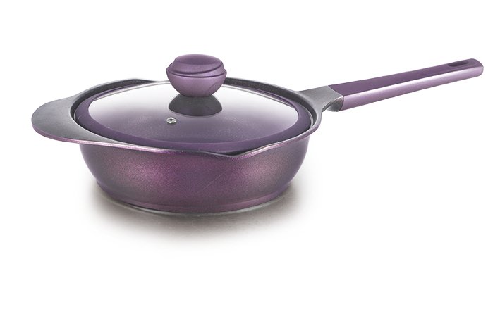 2018 New design purple stainless aluminum alloy saute pan/glass lid with purple rim