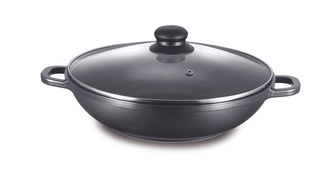 Blue aluminum alloy glass lid nonstick sauce pan with double handles