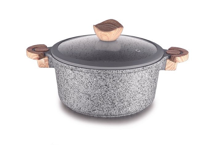 New arrival offwhite outside nonstick coating die-cast ceramic casserole/ wood grain handle