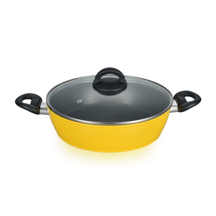 New design double side color non stick forged kitchen shallow sauce pan with bakelite handle